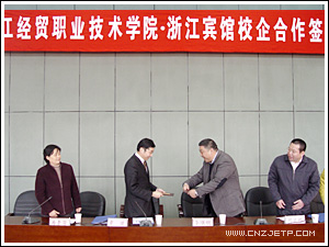 3月21日下午,我院与浙江宾馆校企合作签约仪式在图书馆报告厅隆重举行。浙江宾馆有限责任公司总经理助理、人力资源部总监章璞先生、人力资源部主管夏春芳女士,我院院长李曙明、党委副书记潘素芳、副院长周文根及相关处室负责人出席了该仪式。活动由人文旅游系副主任叶红主持。首先,由周院长致欢迎辞,并对此次校企合作开展情况作了介绍。整个活动分为校企合作签约仪式,“浙江宾馆奖学金”颁发仪式、“浙江宾馆人才培育基地”授牌仪式和授聘仪式四部分。人文旅游系教师和我院酒管05、06级全体学生参加了该仪式。