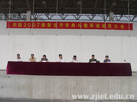 9月14日上午,学院2007级新生开学典礼在田径场隆重举行。出席开学典礼的有学院党政领导童学敏、李曙明、潘素芳、卢显林、潘新华、王建华,系部负责人、辅导员和新生班主任,近三千名来自全国各地的新生参加了典礼。大会由学院党委副书记潘素芳主持。