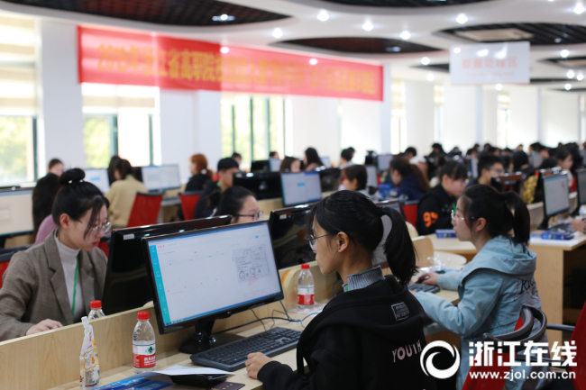 在全国技能大赛中屡获佳绩,本次也斩获头奖的金华职业技术学院领队单松分享了经验:“比赛对选手的心理素质要求很高,所以我们平时会有意识地训练这方面的内容。比如训练点钞项目时,会故意在他旁边说话,还会用五台手机在旁边播放点钞的声音,这些都是为了提高选手的专注度。”