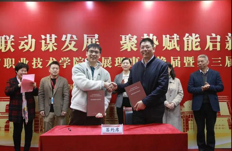 会议审议并通过第三届理事单位及理事名单,选举产生了第三届理事长、副理事长、秘书长,并举行了优秀合作单位授牌、产教融合项目签约和产业学院揭牌仪式。第三届理事长做了讲话。