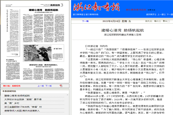 浙江教育报:建暖心港湾 助扬帆起航 浙江经贸职院构建全天候育人空间